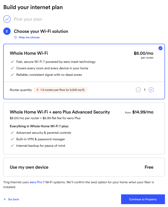 - If your home is ready for service: Click a plan to start building your order.